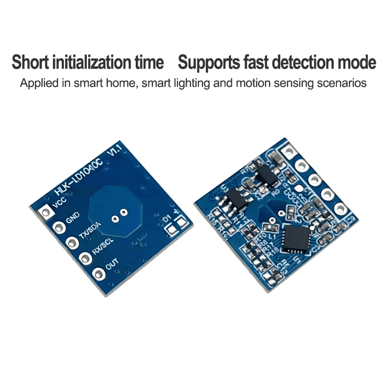 2. There is a description of the initialization status of the fast detection mode: when the module is turned on, the O port outputs 3 high (1s) and low (0.5s) levels, and after another 5 seconds, it enters the induction mode. The first induction is the fast detection mode test