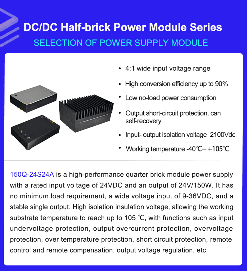 DC/DC half-brick power converter 150Q-24S24A isolated and stabilized 24V to 24V single circuit 150W