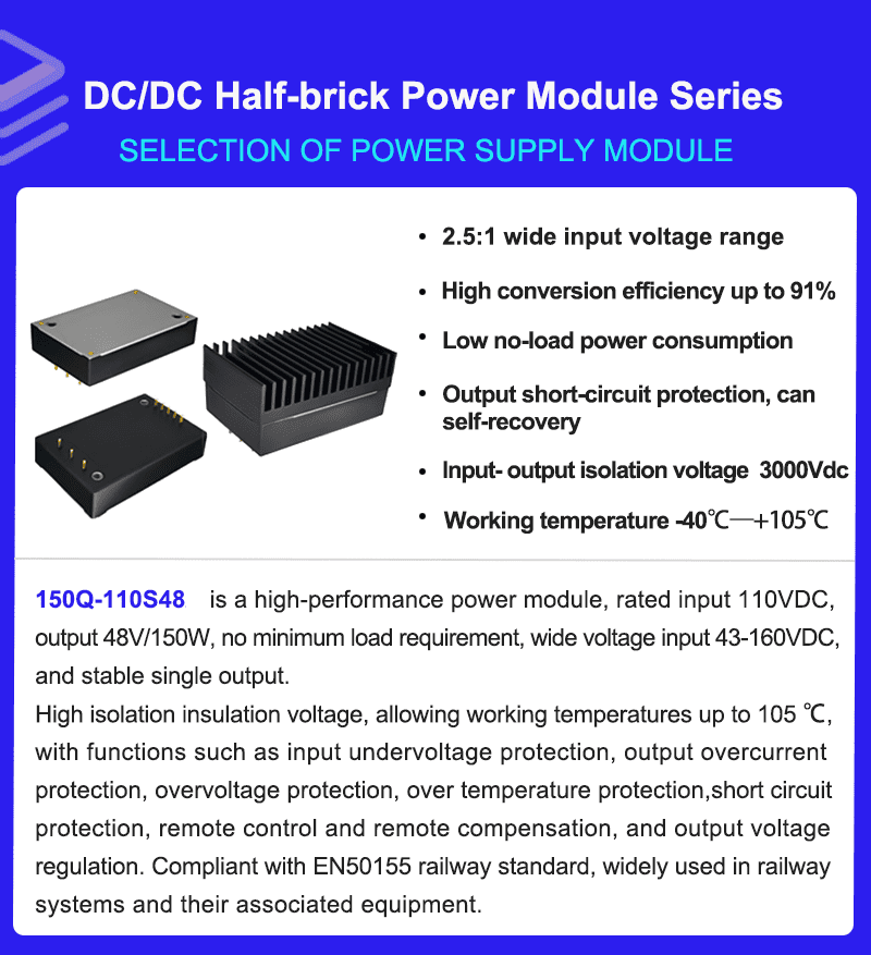 DC/DC half-brick power converter module 150Q-110S48 isolated and stabilized 110V to 48V single circuit 150W