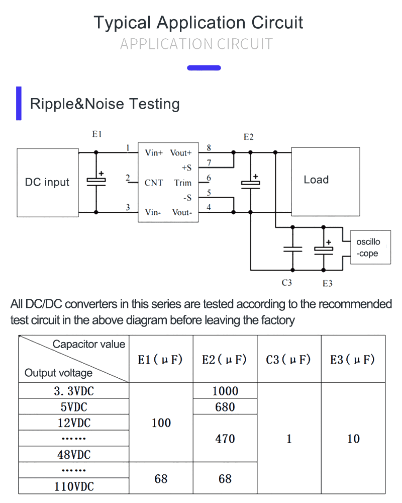 | Linear regulation rate | Full load, input voltage changes from low voltage to high voltage | -- | ±0.2 | ±0.5 | |