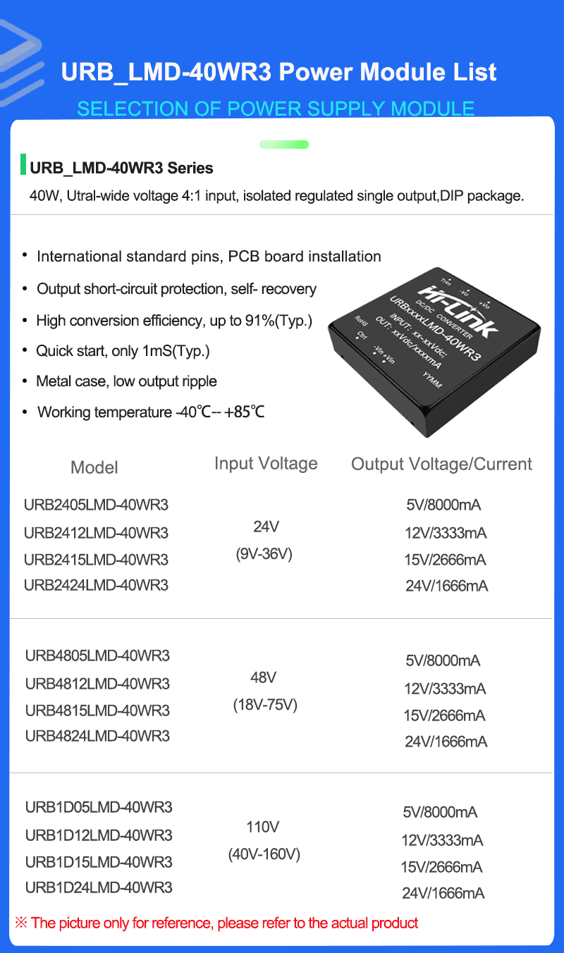 URB4805LMD-40WR3 URB4812/URB4815/URB4824LMD-40W DC-DC isolated power converter module