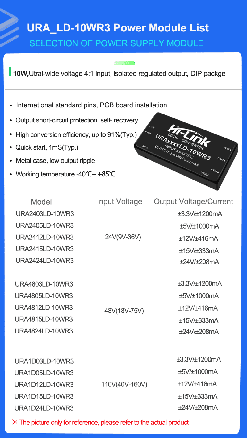 URA2405LD-10WR3 URA2412/ URA2424 DCDC isolated power module 24 to 3.3/9/12/15/24V wide voltage input power converter