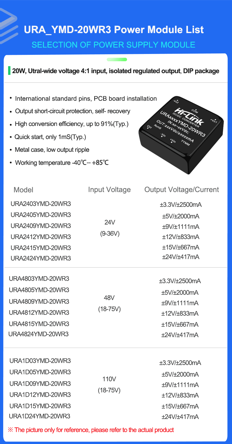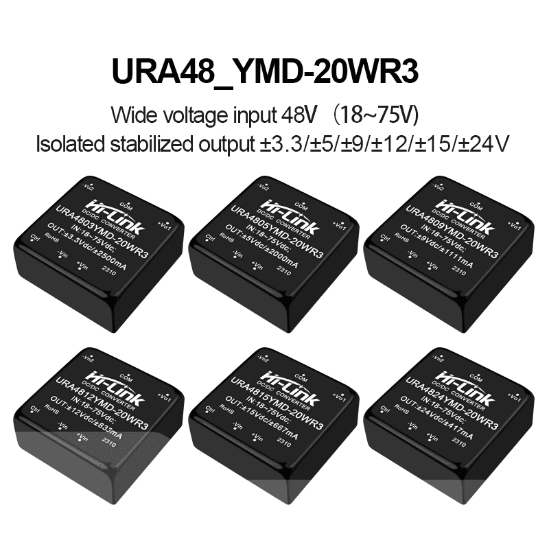 URA4805YMD-20WR3 URA4812YMD/URA4815YMD/URA4824YMD DCDC power module 48V to 3.3/5/9/12/15/24V isolated dual output