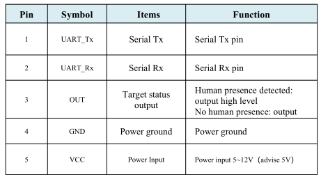 This product is mainly used in indoor scenes to sense whether there is a moving or micro-moving human body in the area, and output the detection results in real time. The farthest sensing distance can reach 5 meters, and the distance resolution is 0.75m. Provides a visual configuration tool, which can easily configure the sensing distance range, sensing sensitivity in different intervals and unmanned delay time, etc., to adapt to different specific application needs.