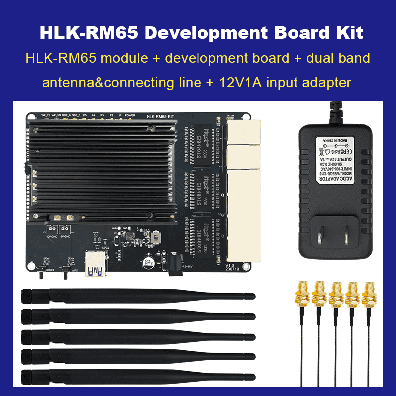 HLK-RM65 is a high-performance embedded WIFI6 AX3000 module launched by Hi-Link Electronics, which is highly integrated the on chip system wireless network router module uses the MT7981B+MT7976C+MT7531A scheme, with a theoretical maximum wireless speed 574Mbps+2402Mbps. Used for high wireless performance, home entertainment, and home automation.