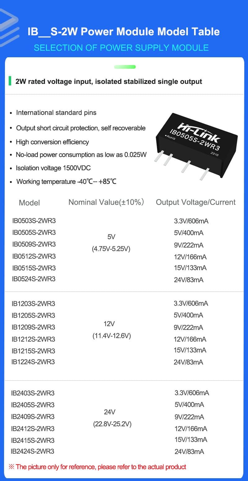 IB0505S-2WR3 IB0503/IB0509/IB0512/IB0515/IB0524S-2W DC-DC isolated step down power supply module with short-circuit protection