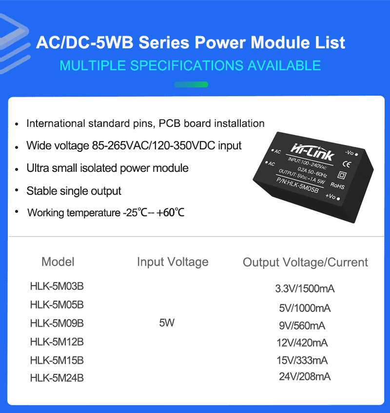 New solution HLK-5M05B compatible with HLK-5M05 AC to DC 5v 5w Step Down mini Power Supply Module Converter Intelligent household switch power module