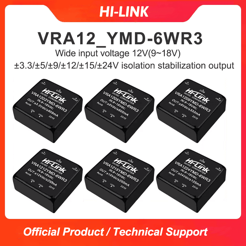 VRA1212YMD-6WR3 Hi-link dc-dc 6W VRA1203/VRA1205/VRA1215/VRA1224YMD-6WR3 voltage stablization dual output power converter module