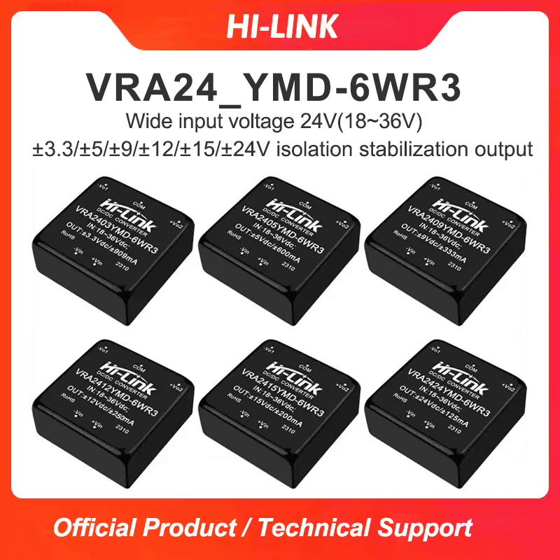 VRA2412YMD-6WR3 Hi-link dc-dc 6W VRA2403/VRA2405/VRA2415/VRA2424YMD-6WR3 voltage stablization dual output power converter module