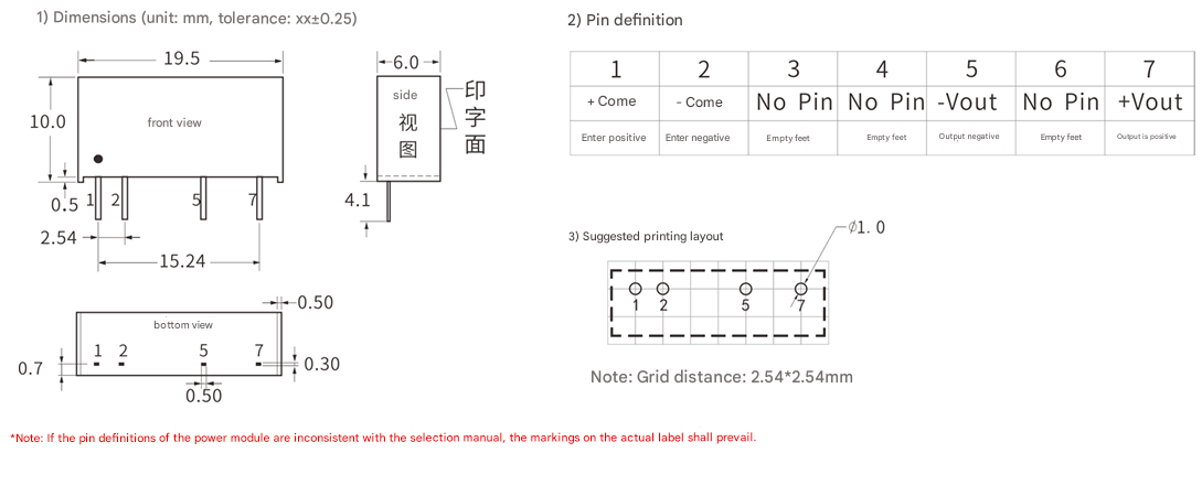 *Note: If the definition of each pin of the power module is inconsistent with the selection manual, the label on the physical label shall prevail.