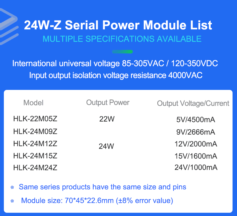 The HLK-22M05Z bare board power module is a small-sized, high-efficiency module power supply designed by Hi-link Electronics for customers. Having global input voltage
