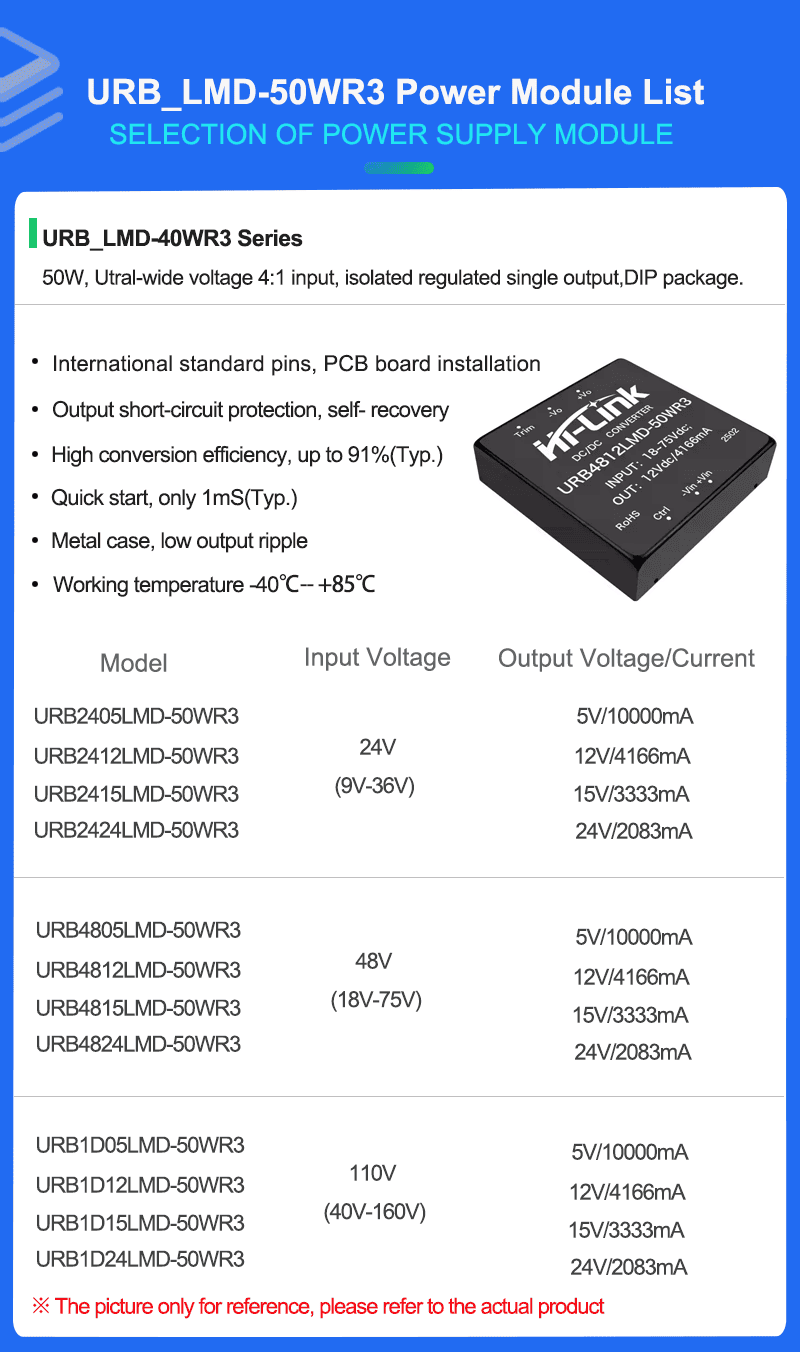 URB4805LMD-50WR3 URB4812/URB4815/URB4824LMD-50WR3 DC-DC isolated Stable voltage output short circuit protection power converter module