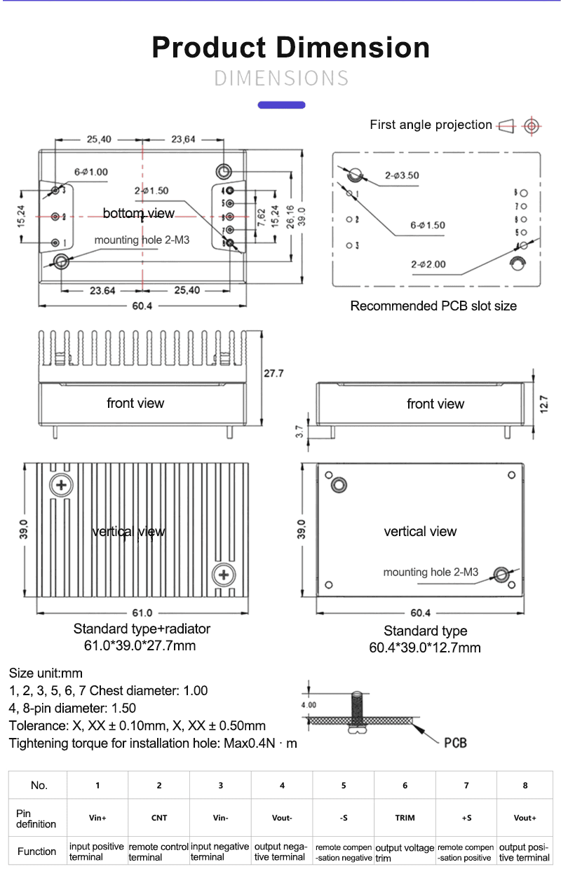 | Temperature drift coefficient | Positive logic: CNT suspended or connected to 3.5-15V for startup, connected to 0-1.2V for shutdown | -0.02 | -- | +0.02 | %/℃ |