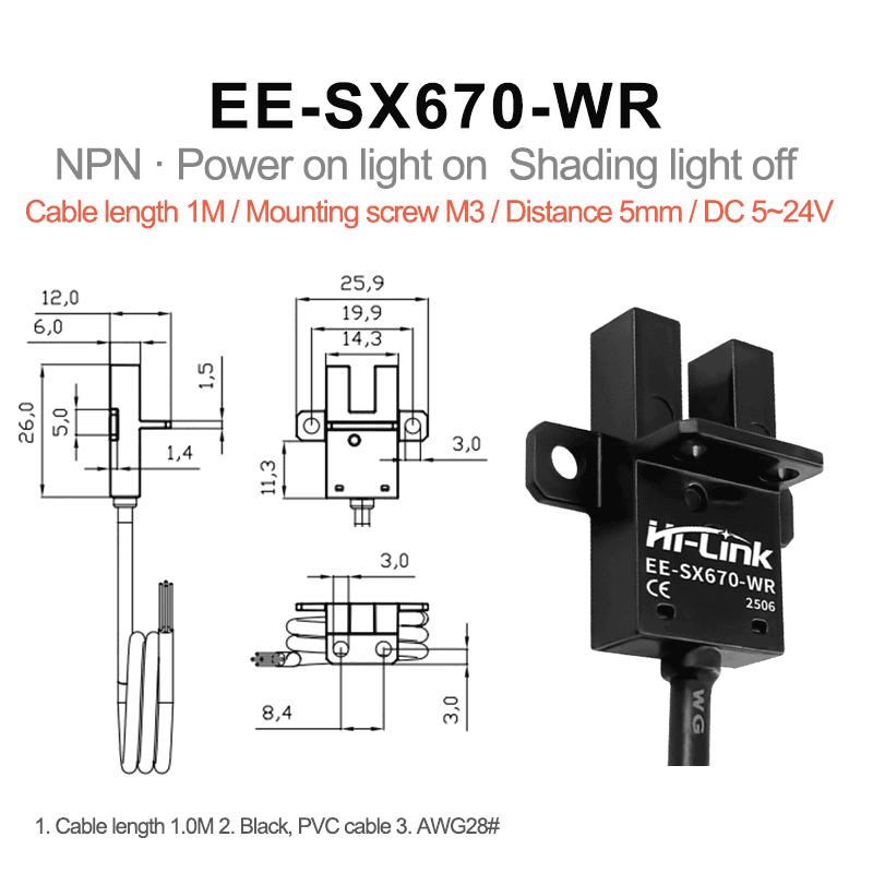 Hi-link Slot Type Photoelectric Sensor Switch Groove Width 5mm NPN Photoelectric Switch U-type Photoelectric Sensor SX670