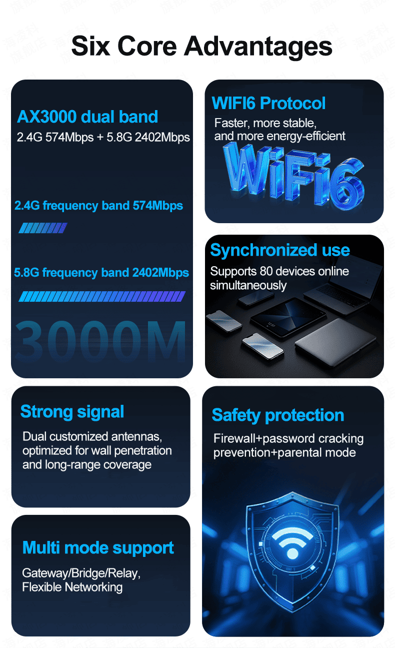 Hi-link WiFi 6 Wireless Router HLK-WR10 Mini Small Portable Home Dual Band Gigabit AX3000 High Speed Universal Data