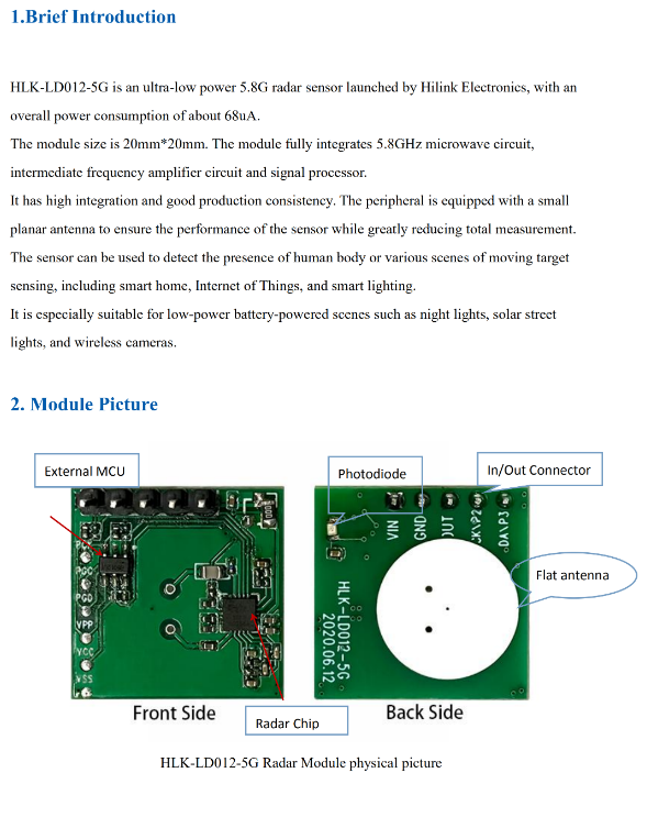 Ultra-low Power 5.8G Radar Sensor Module Radar Induction Switch Sensor Module HLK-LD012-5G