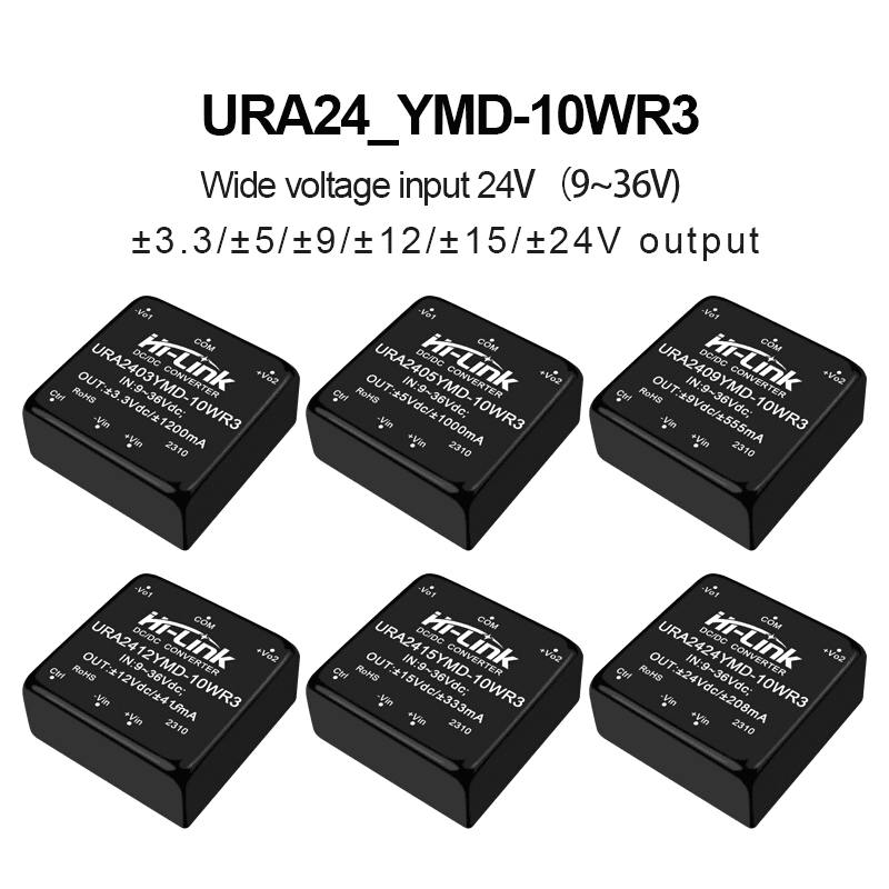 URA2405YMD-10WR3 URA2412/URA2424YMD DCDC isolated power module 110V to 3.3/9/12/15/24 dual output power converter